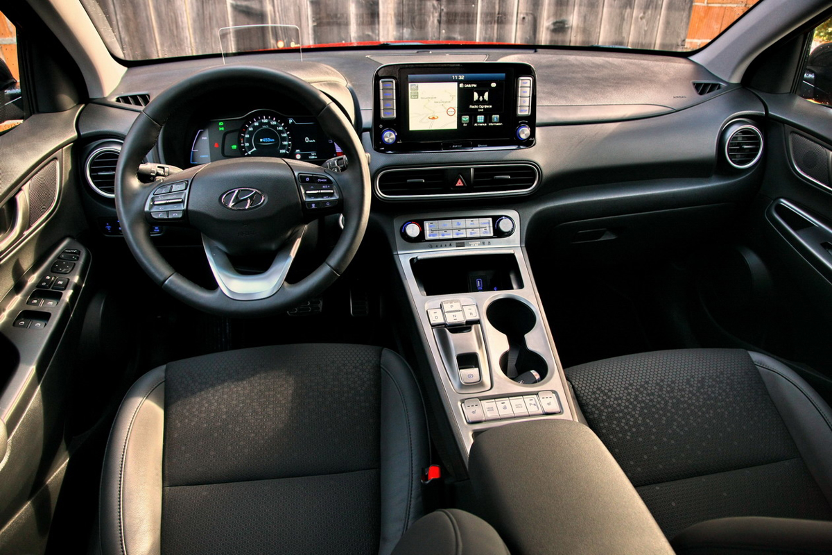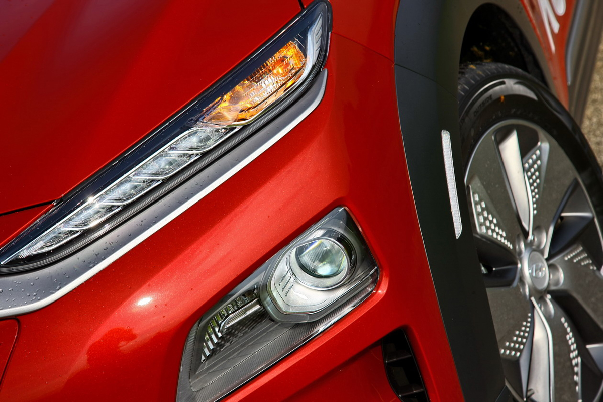 Kona electric je prvi pravi električni športni terenec na evropskem trgu, takoj pa je prepoznaven po zaprti motorni maski. Ima tudi serijske LED-žaromete, drugačne zadnje luči, futuristična 17-palčna platišča, sedem le njemu namenjenih barv, tri barve strehe (skupnih kombinacij je 21), digitalne merilnike, projicirni zaslon (HUD), ''visečo'' osrednjo konzolo (in pod njo odlagalno površino), sedem- ali osempalčni osrednji zaslon ter štiri načine vozne dinamike (sport, comfort, eco in eco+).