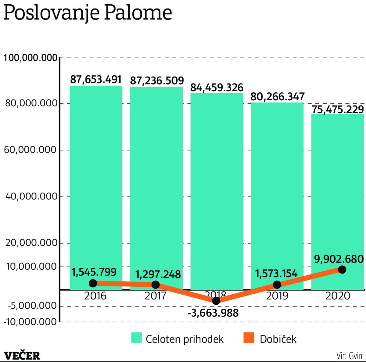 Predsednik uprave Žigmund pa nam je v intervjuju, ki ga bomo objavili v prihodnjih dneh, odgovoril, da so bili lanski poslovni rezultati dobri, a da jih bodo objavili po revidiranju, konec avgusta. Spomnimo, da je Paloma še v letu 2018 imela 3,6 milijona evrov izgube, v letu 2019 milijon in pol evrov dobička, po podatkih Gvina pa naj bi bila lansko leto ob 75 milijonih evrov prihodkov zaključila z več kot devetimi milijoni evrov čistega dobička. Sicer pa je Skupina SHP, ki jo prav tako vodi Žigmund, z nad 220 milijoni evrov prihodkov letno največji proizvajalec higienskih papirnih izdelkov v centralni in jugovzhodni Evropi. 1500 zaposlenih proizvede 160 tisoč ton letno, kar dobavljajo v dvajset evropskih držav. Poleg Palome vključuje še proizvodnjo v Banjaluki (BiH), Slavošovcih in Harmanecu na Slovaškem.